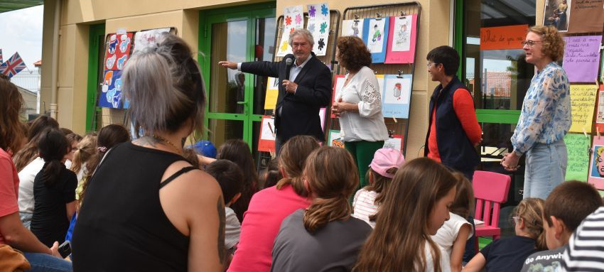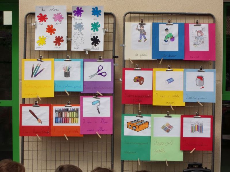 Les animations se sont ensuite poursuivies par la lecture d'un album "the artist who painted a blue horse" par Ivy (une petite élève anglophone de notre école), les élèves ont également présenté des affichages et des travaux sur le thème de l'art.
