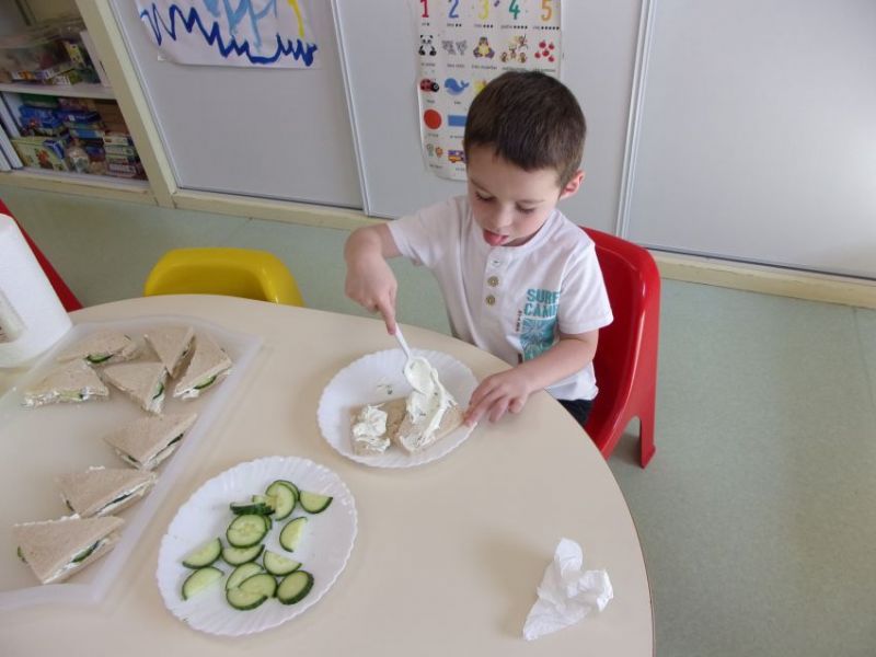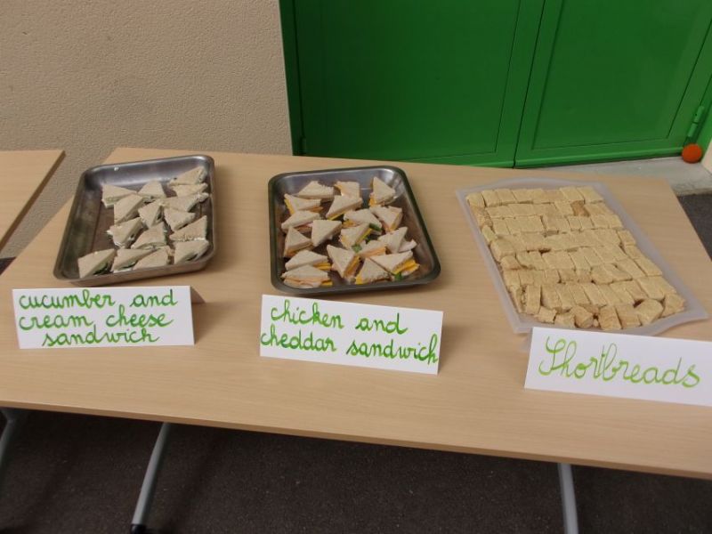 Ensuite, les parents ont pu partager le fameux Teat Time. Les élèves avaient confectionné des "shortbreads", des sandwichs au concombre et au fromage frais ainsi que des "lemon sponge cakes", le tout acompagné de thé.